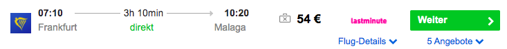 Hinflug-Beispiel Frankfurt – Malaga mit Ryanair:
