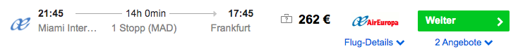 Rückflug-Beispiel Miami – Frankfurt mit AirEuropa: