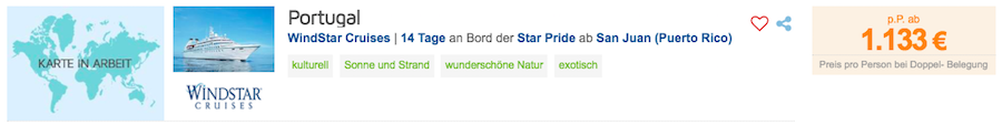 Ihr habt mal Lust, ein richtiges Luxusschiff für maximal 212 Passagiere extrem billig auszuprobieren? Dann ist die 13-nächtige Transatlantik-Kreuzfahrt von Puerto Rico bis nach Lissabon auf der „Star Pride“ der US-amerikanischen Luxusreederei WindStar Cruises genau das richtige für euch!