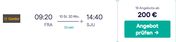 Für die Anreise nach San Juan zum Schiff bietet sich der Condor-Direktflug ab Frankfurt/Main z.B. am 21.03.2020 an, der aktuell schon für 200€ Oneway buchbar ist! So kommt ihr ohne lästigen Umstieg gut und günstig nach San Juan.